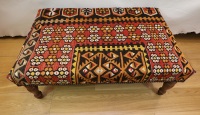 Kilim furniture looks glorious whenever placed in a living room, study or any other extremely visible place of a home. Kilim furniture mainly include Kilim chairs, Kilim sofas, Kilim Stools, trunks, tables or other kind of furniture made up from kilims. All Kilims used in our products is old and genuine. Since every kilim is unique, the colouring and motifs will vary from each piece of furniture. Kilim Chairs can be made to order for any size, we manufacture upholstered furniture using old Turkish Kilims and fabrics. More images for click for more Kilim Sofas and More Kilim Chairs