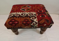 Kilim Stools looks Beautiful whenever placed in a living room, study or any other extremely visible place of a home. Kilim footstools mainly include Ottoman Kilim Tables, Kilim Bench Stools other kind of Kilim furniture made up from kilims at Rug Store. All Kilims used in our products is old and genuine. Since every kilim is unique, the colouring and motifs will vary from each piece of furniture. Kilim Stools can be made to order for any size, we manufacture upholstered furniture using old Turkish Kilims and fabrics