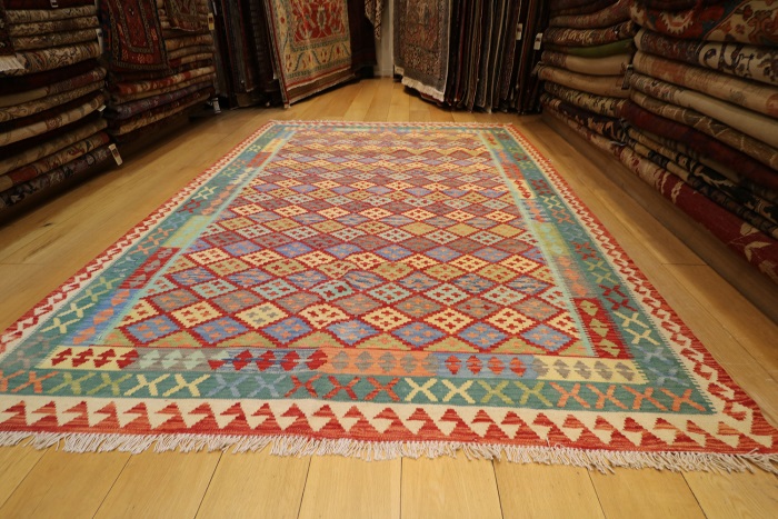 Kilim Rugs are flat woven textiles that are made of intersecting warps and wefts. For thousands of years, kilims have been woven to serve utilitarian purposes, such as for floor coverings, Wall Hanging, Kilim Furniture, Kilim Cushions, and numerous other functions.