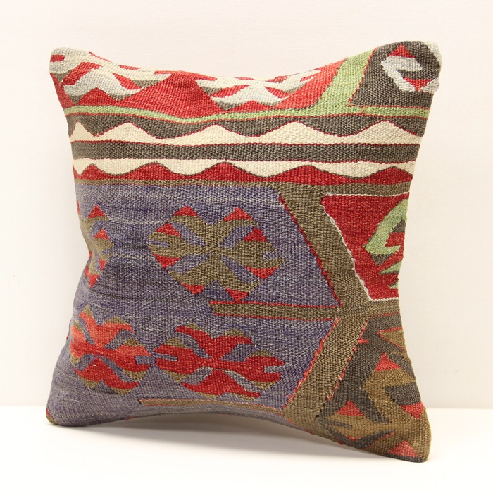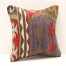 Kilims used in our products are old and genuine. These Kilim Cushions are made with pieces of carpets and kilims joined to make Kilim Cushion Covers. Kilim Pillows can be made for order for any size. Back has cotton with a zipper.