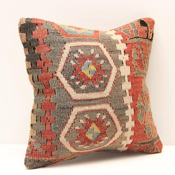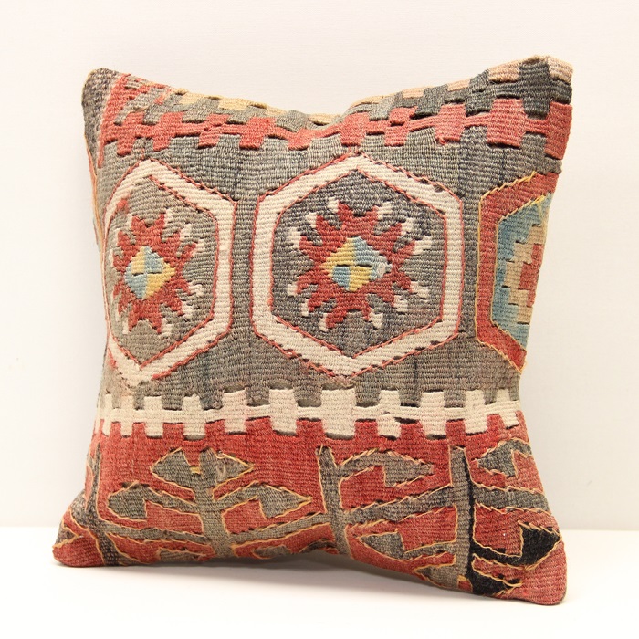 Kilims used in our products are old and genuine. These Kilim Cushions are made with pieces of carpets and kilims joined to make Kilim Cushion Covers. Kilim Pillows can be made for order for any size. Back has cotton with a zipper.