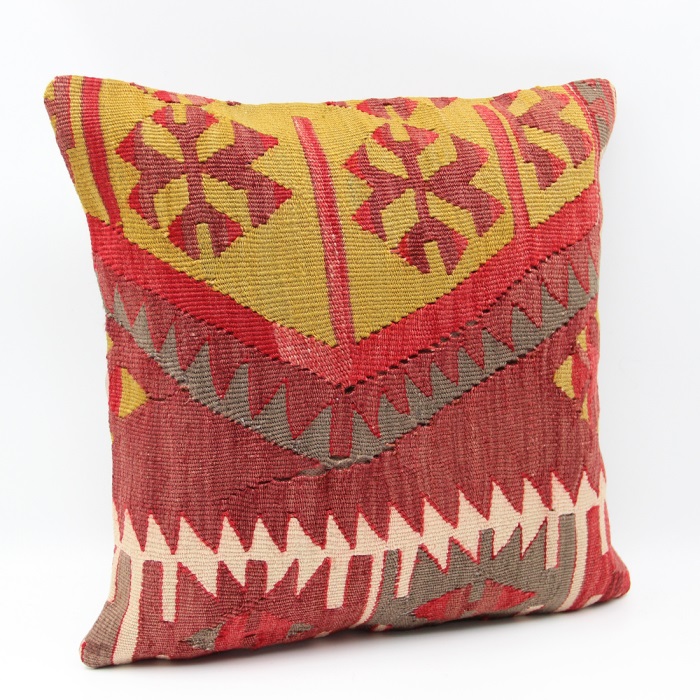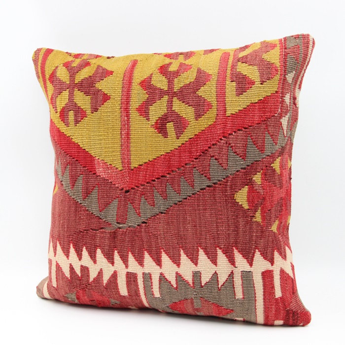 Kilims used in our products are old and genuine. These Kilim Cushions are made with pieces of carpets and kilims joined to make Kilim Cushion Covers. Kilim Pillows can be made for order for any size. Back has cotton with a zipper.