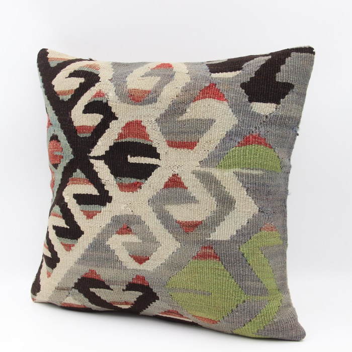 Kilims used in our products are old and genuine. These Kilim Cushions are made with pieces of carpets and kilims joined to make Kilim Cushion Covers. Kilim Pillows can be made for order for any size. Back has cotton with a zipper.