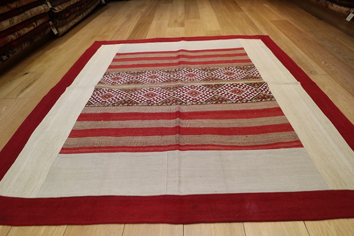 Kilim Patchwork Rugs are created from pieces of miscellaneous 40 – 80 years old hand-woven weavings. A new generation of artists in Istanbul utilize these semi-antique weavings after they have them cleaned and some of them dyed to their specifications to create a new art form. The weavings are cut into squares and other basic geometric forms and assembled in a pattern, backed with two layers of fabric to reinforce, sewn together and ironed.