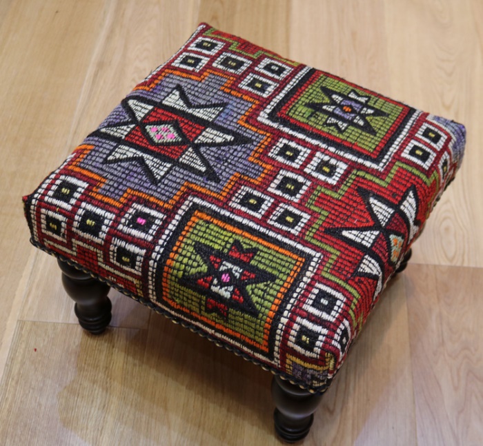 Kilims are handmade, so when we upholster a piece of furniture, you can be sure that each piece is quite individual. Kilim Stools, Sofas and Chairs can be made to order for any size.