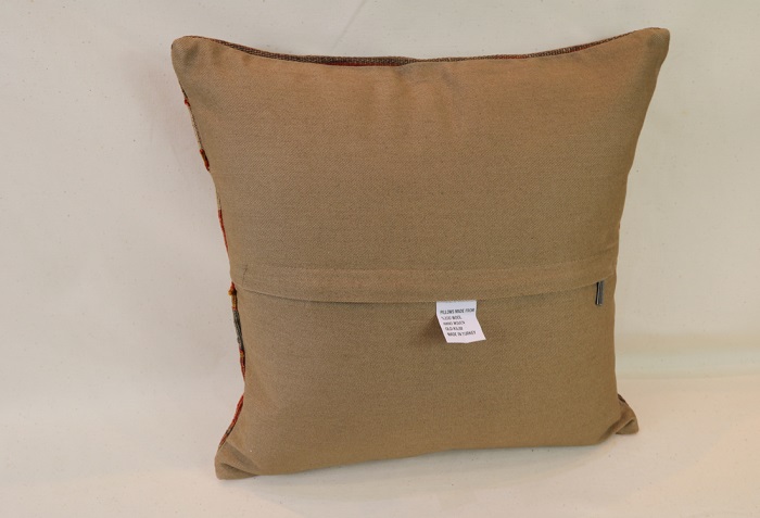 Kilims used in our products are old and genuine. These Kilim Cushions are made with pieces of carpets and kilims joined to make Kilim Cushion Covers. Kilim Cushion Covers can be made for order for any size. Back has cotton with a zipper