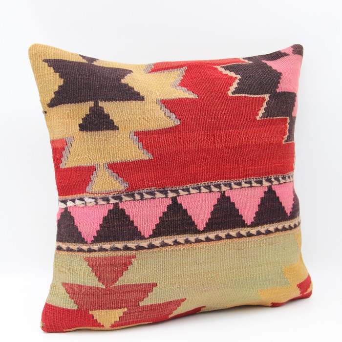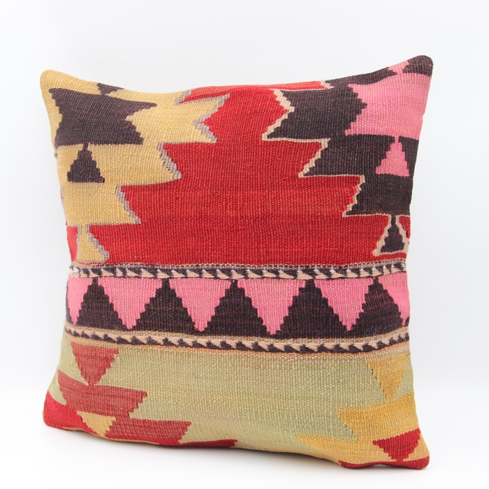 Kilims used in our products are old and genuine. These Kilim Cushions are made with pieces of carpets and kilims joined to make Kilim Cushion Covers. Kilim Pillows can be made for order for any size. Back has cotton with a zipper.