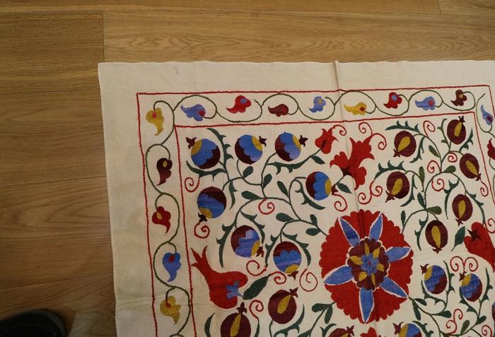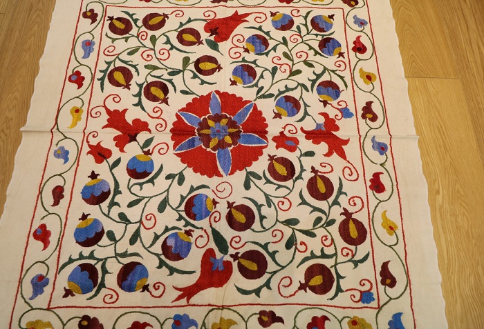 We are happy to bring you the latest and modern Uzbek suzanis at competitive prices. Our suzanis are genuine folk art, stitched by hand in the ancient traditional motif. You can use them as a cover for the bed and they can bring colour and texture to any environment. Suzani make delightful wall hangings, bedspreads, furniture throws, pillows, and even tablecloths.