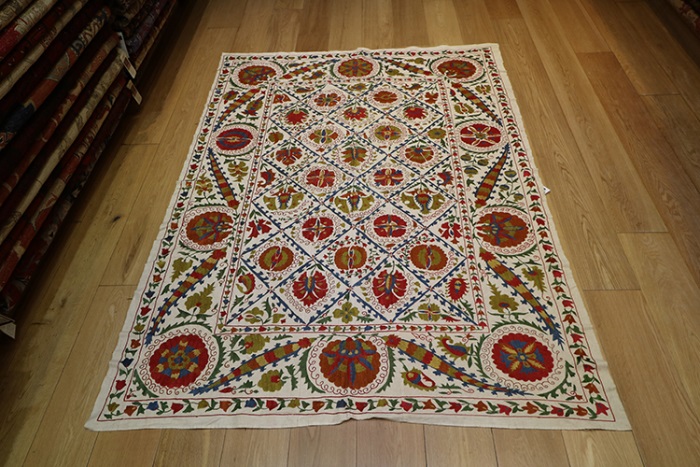 We are happy to bring you the latest and modern Uzbek suzanis at competitive prices. Our suzanis are genuine folk art, stitched by hand in the ancient traditional motif.