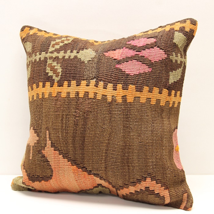 Kilims used in our products are old and genuine. These Turkish Kilim Cushion Covers are made with pieces of carpets and kilims joined to make Kilim Pillow Covers. Kilim Cushion Covers can be made for order for any size. Back has cotton with a zipper.