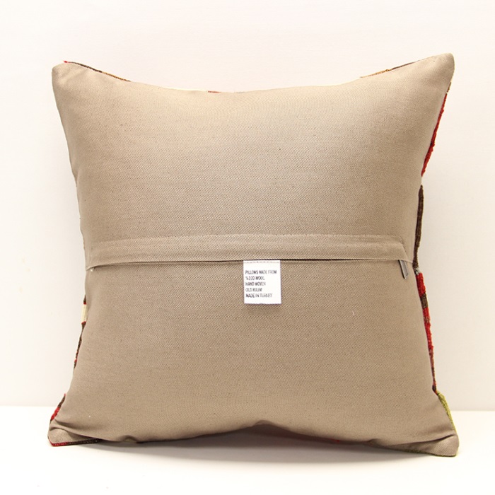 Kilims used in our products are old and genuine. These Kilim Cushions are made with pieces of carpets and kilims joined to make Kilim Cushion Covers. Kilim Pillows can be made for order for any size. Back has cotton with a zipper