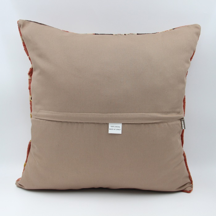 Kilims used in our products are old and genuine. These Kilim Cushions are made with pieces of carpets and kilims joined to make Kilim Cushion Covers. Kilim Cushion Covers can be made for order for any size. Back has cotton with a zipper