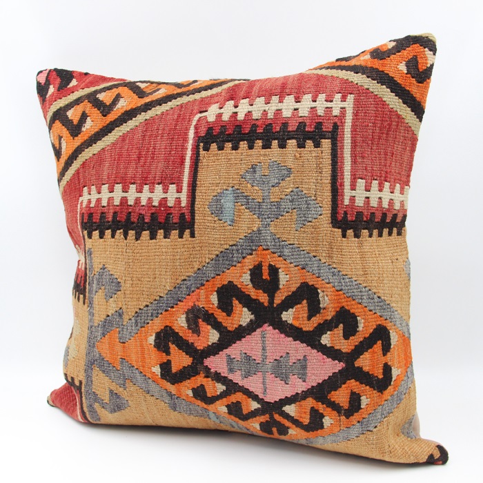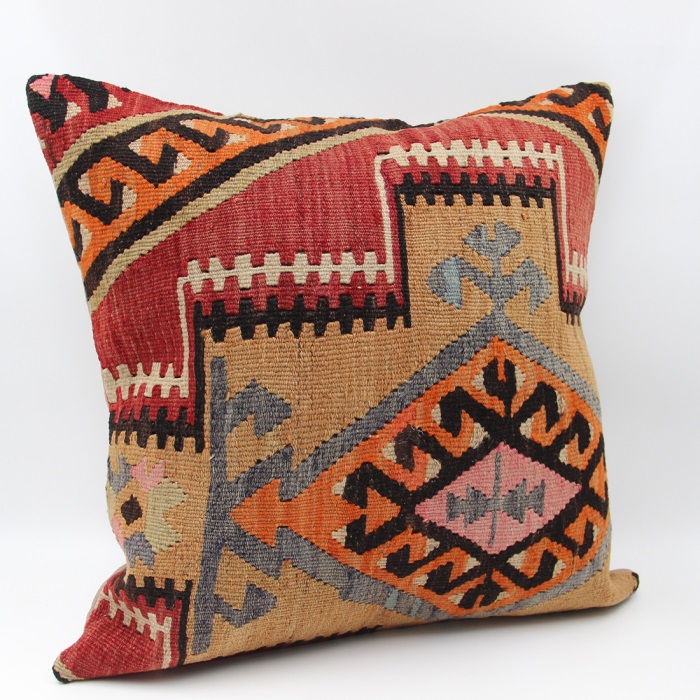 Kilim Rugs used in our products are old and genuine. These Kilim Cushions are made with pieces of carpets and kilims joined to make Kilim Cushion Covers. Kilim Cushion Covers can be made for order for any size. Back has cotton with a zipper