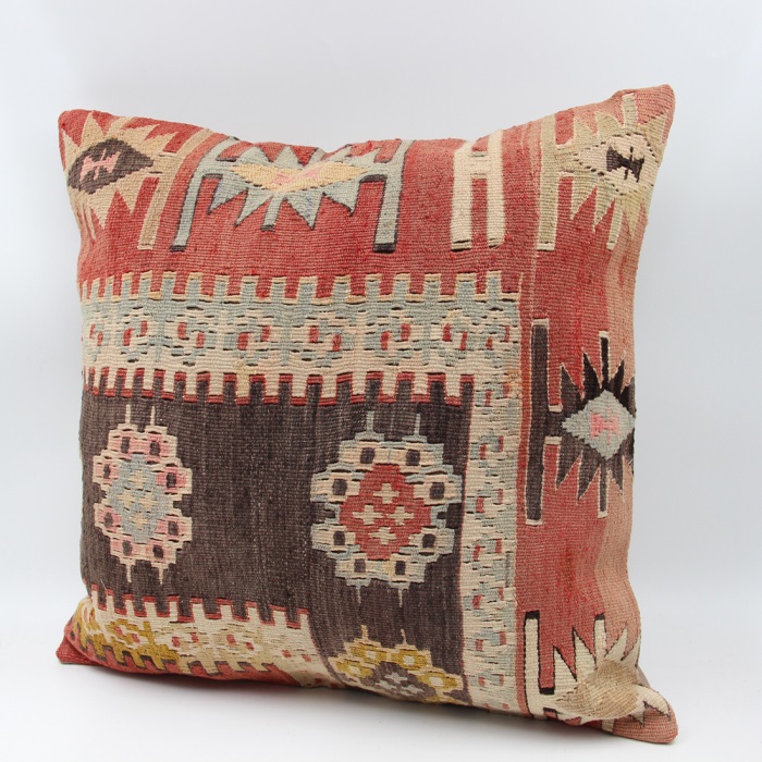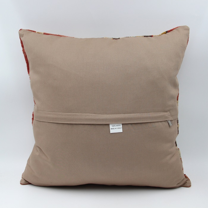 Kilims used in our products are old and genuine. These Kilim Cushions are made with pieces of carpets and kilims joined to make Kilim Cushion Covers. Kilim Pillows can be made for order for any size. Back has cotton with a zipper