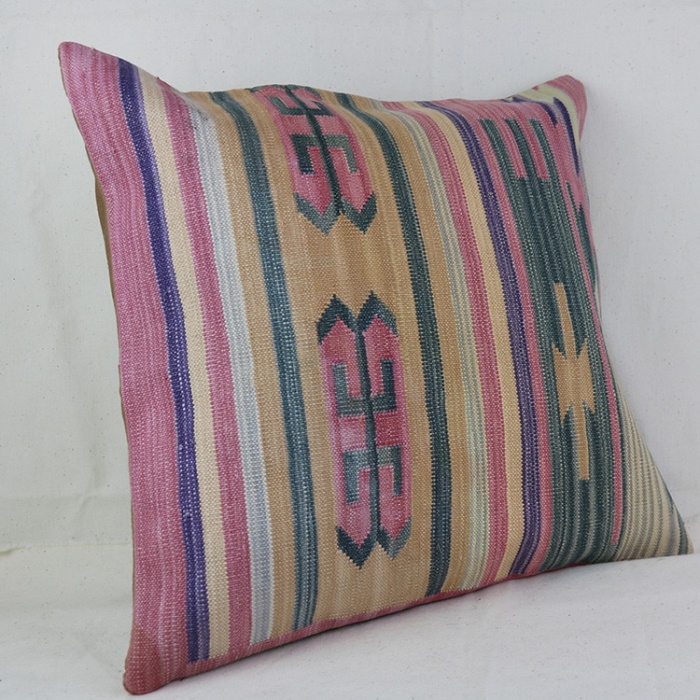 Kilims used in our products are old and genuine. These Kilim Cushions are made with pieces of carpets and Kilims joined to make Kilim Cushion Covers. Kilim Cushion Covers can be made for order for any size. Back has cotton with a zipper