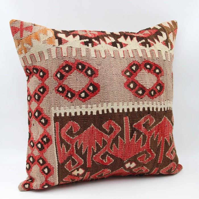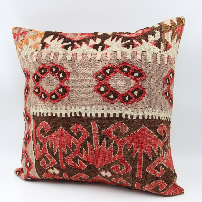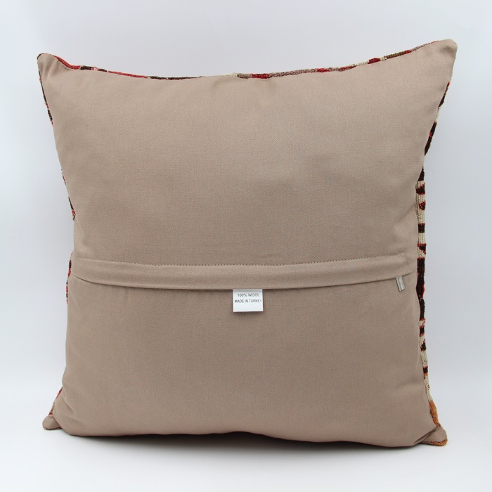 Kilims used in our products are old and genuine. These Kilim Cushions are made with pieces of carpets and kilims joined to make Kilim Cushion Covers. Kilim Cushion Covers can be made for order for any size. Back has cotton with a zipper.