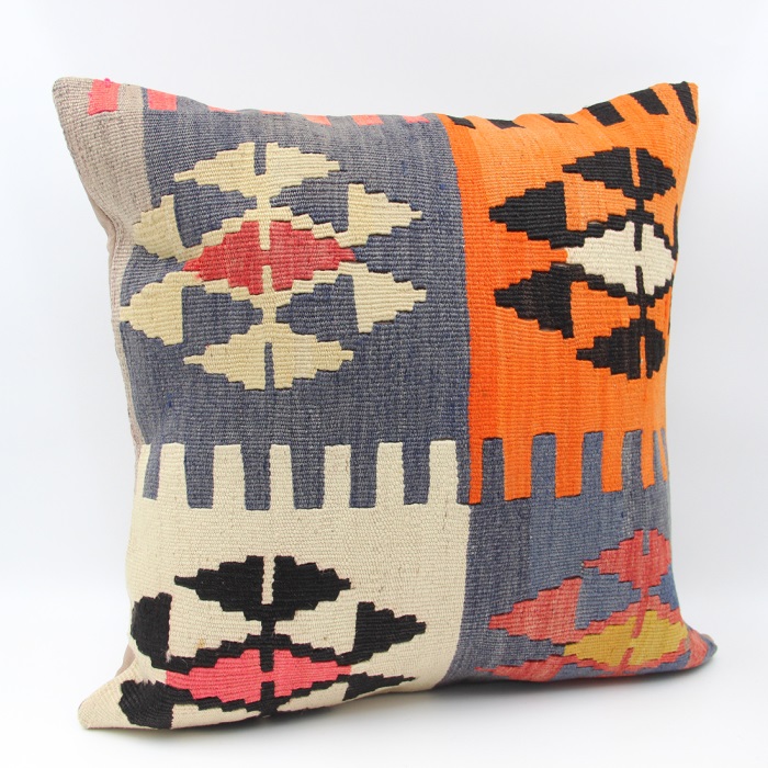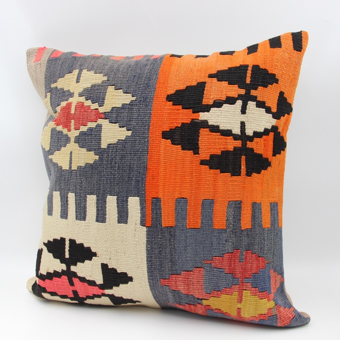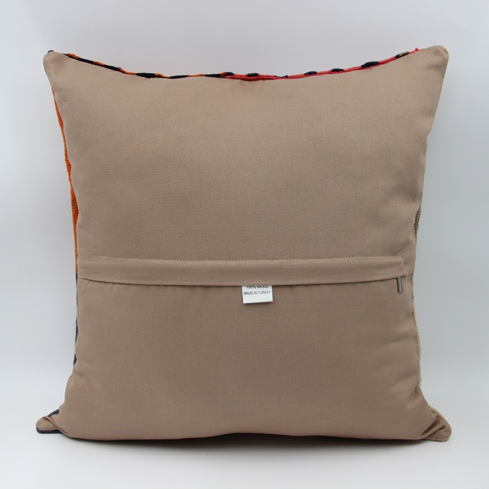Kilims used in our products are old and genuine. These Kilim Cushions are made with pieces of carpets and kilims joined to make Kilim Cushion Covers. Kilim Pillow Covers can be made for order for any size. Back has cotton with a zipper.