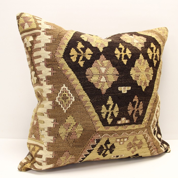 Kilims used in our products are old and genuine. These Kilim Cushions are made with pieces of carpets and kilims joined to make Kilim Cushions. Kilim Cushion Covers can be made for order for any size. Back has cotton with a zipper.
