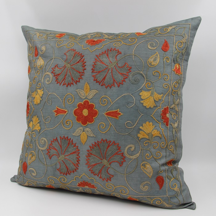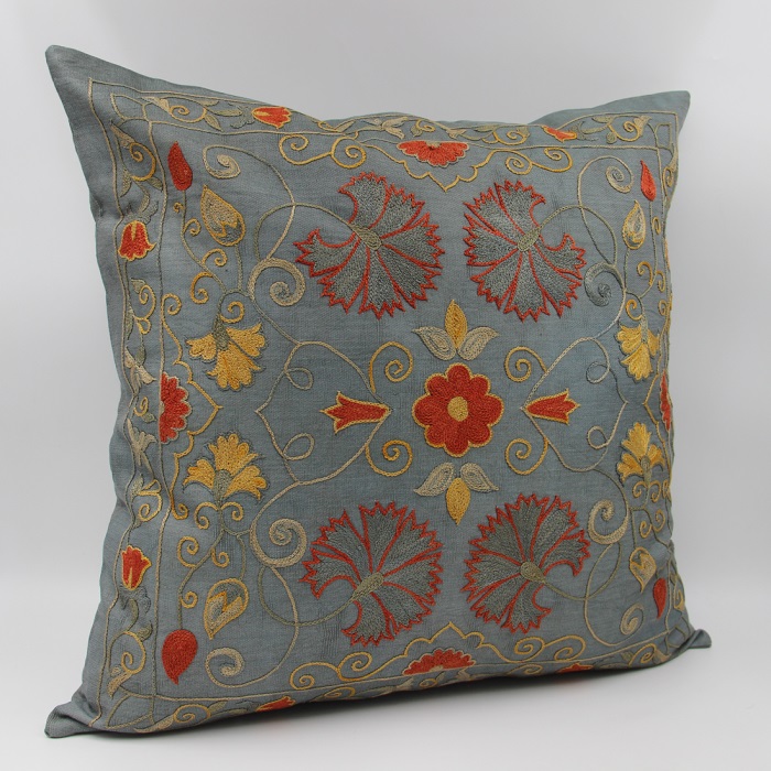 Silk Suzani Cushion Cover made from Uzbek hand embroidery Silk on Silk Suzani, View one of the most Suzani Cushion Pillows with largest selection of Suzani Rugs at Rug Store online for UK and worldwide delivery.