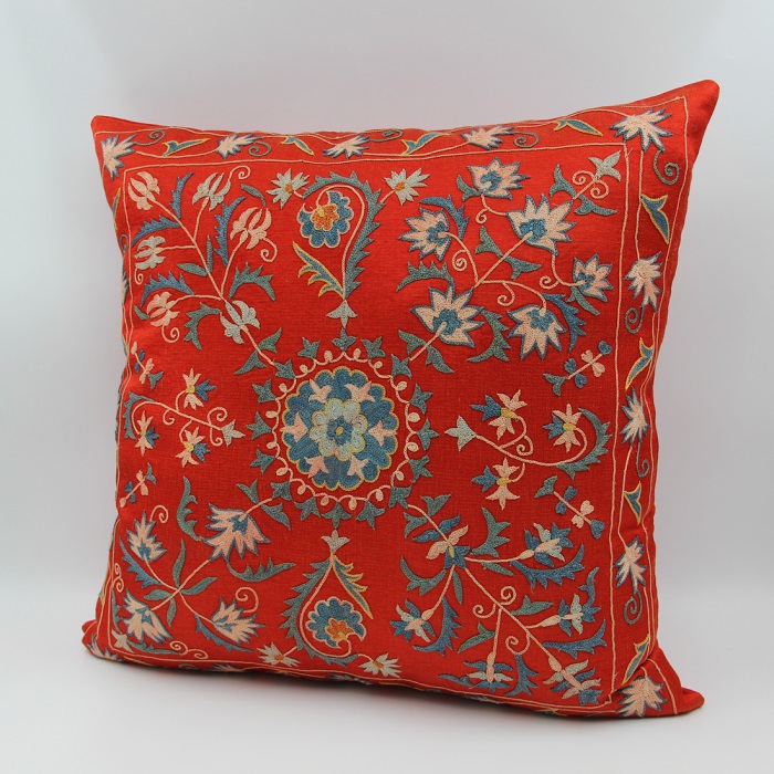 Silk Suzani Cushion Cover made from Uzbek hand embroidery Silk on Silk Suzani, View one of the most Suzani Cushion Pillows with largest selection of Suzani Rugs at Rug Store online for UK and worldwide delivery.