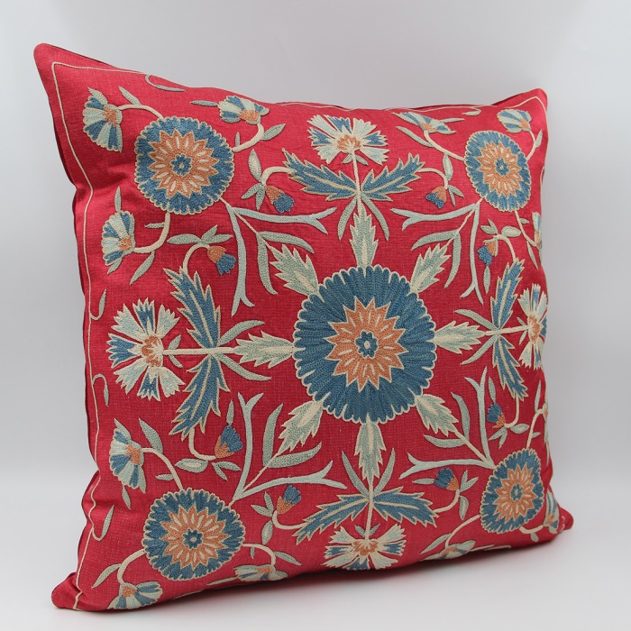Silk Suzani Cushion Cover, Stunning cushion covers from Uzbekistan. Hand embroidered in pure silk thread. Durable and stylish, they will brighten up your room in a jiffy! Perfect for a splash of colour on your sofa or chair. Back side is cotton fabric with hidden zipper.