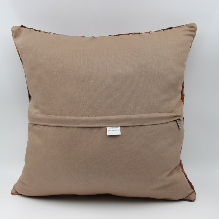 Kilims used in our products are old and genuine. These Kilim Cushions are made with pieces of carpets and kilims joined to make Kilim Pillow Covers. Kilim Cushion Covers can be made for order for any size. Back has cotton with a zipper.