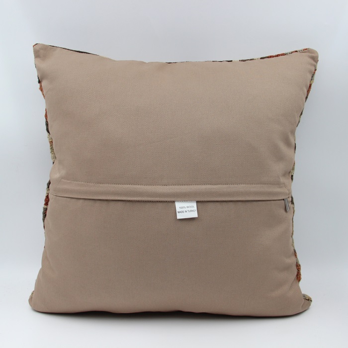 Kilims used in our products are old and genuine. These Kilim Cushions are made with pieces of carpets and kilims joined to make Kilim Cushion Covers. Kilim Pillow Covers can be made for order for any size. Back has cotton with a zipper