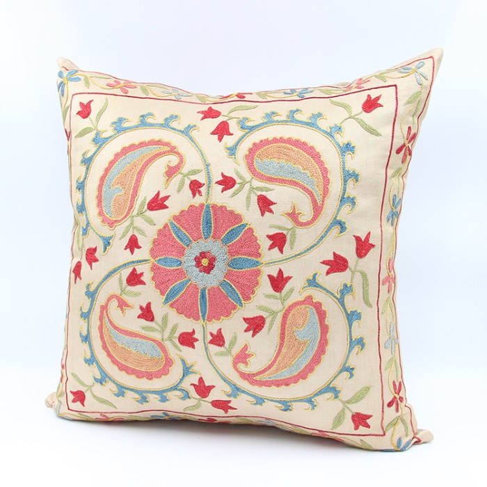 Silk Suzani Cushion Cover made from Hand Embroidered Genuine Silk Suzani, View one of the most Suzani Cushion Pillows with largest selection of Suzani Rugs at Rug Store online for UK and worldwide delivery
