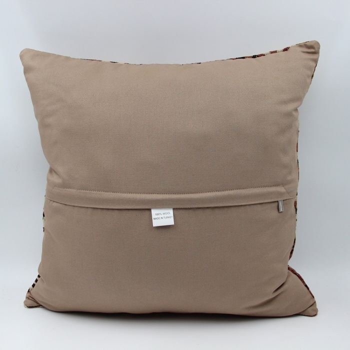 Kilims used in our products are old and genuine. These Kilim Cushions are made with pieces of carpets and kilims joined to make Kilim Cushion Covers. Kilim Cushion Covers can be made for order for any size. Back has cotton with a zipper.