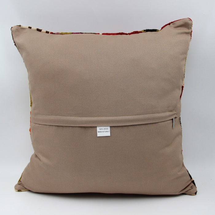 Kilims used in our products are old and genuine. These Kilim Cushions are made with pieces of carpets and kilims joined to make Kilim Cushion Covers. Kilim Cushion Covers can be made for order for any size. Back has cotton with a zipper