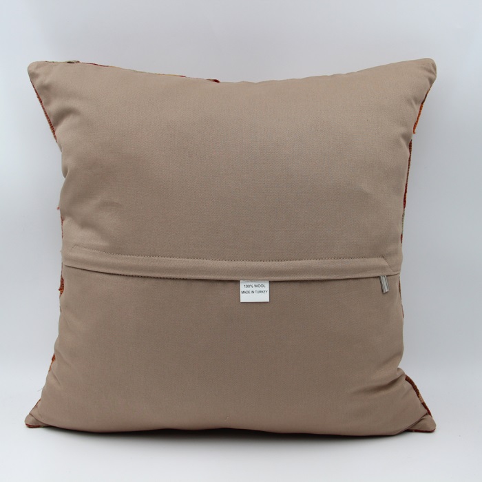 Kilims used in our products are old and genuine. These Kilim Cushions are made with pieces of carpets and kilims joined to make Kilim Cushion Covers. Kilim Cushions can be made for order for any size. Back has cotton with a zipper