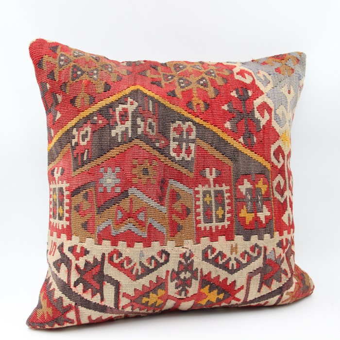 Kilims used in our products are old and genuine. These Kilim Cushions are made with pieces of carpets and kilims joined to make Kilim Cushion Covers. Kilim Cushion Covers can be made for order for any size. Back has cotton with a zipper.