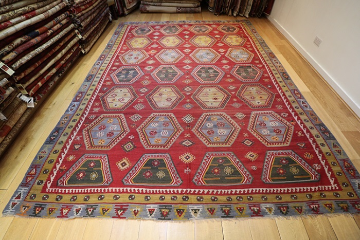 Antique Turkish Sarkisla Kilim Rug - View one of the most comprehensive collections of Turkish Kilim Rugs, Antique Kilim Rugs, Persian Kilim Rugs and Afghan Kilim Rugs, with worldwide delivery. Rug Store based in London UK.