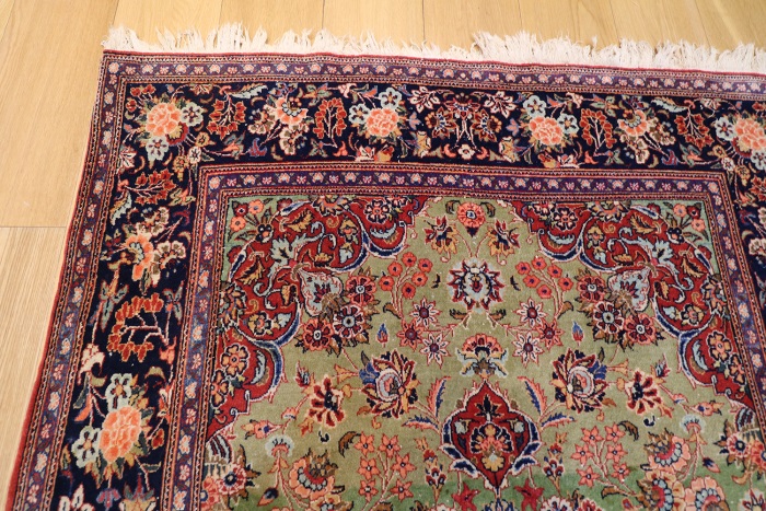 This particular rug is over hundred years old and very good condition. (but There are very light stain spots in a dark tone on some parts of the rug.)