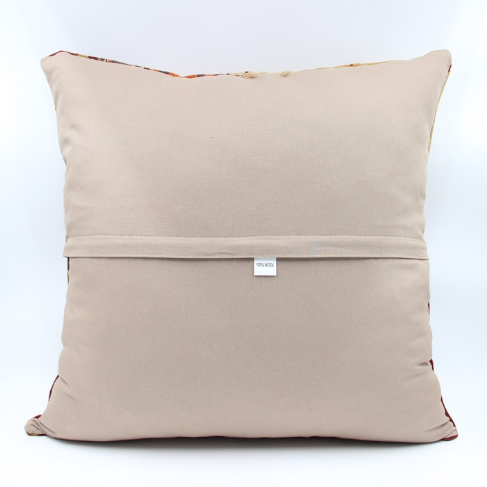 Kilims used in our products are old and genuine. These Kilim Cushions are made with pieces of carpets and kilims joined to make Kilim Cushion Covers. Kilim Pillows can be made for order for any size. Back has cotton with a zipper.