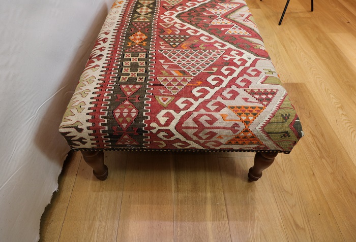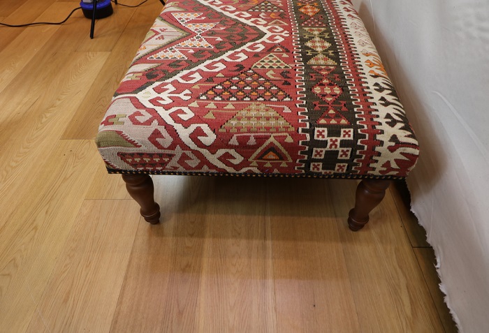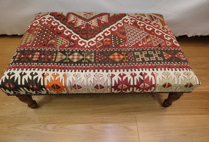 Kilim Furniture can be made to order according to the requirement of the client. They can choose the rugs from the hundreds of varieties with which to upholster the stools. As each piece of kilim is unique both in the sense of colour combinations and the designs woven into it, you can rest assured that the Kilim Footstools would be a prized possession among your Kilim Tables lending elegance and style.