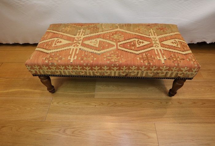 Kilim Furniture can be made to order according to the requirement of the client. They can choose the rugs from the hundreds of varieties with which to upholster the stools. As each piece of kilim is unique both in the sense of colour combinations and the designs woven into it, you can rest assured that the Kilim Footstools would be a prized possession among your Kilim Tables lending elegance and style.