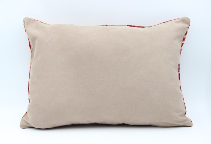 Kilims used in our products are old and genuine. These Kilim Pillows are made with pieces of carpets and kilims joined to make Kilim Cushion Covers. Kilim Cushion Covers can be made for order for any size. Back has cotton with a zipper.