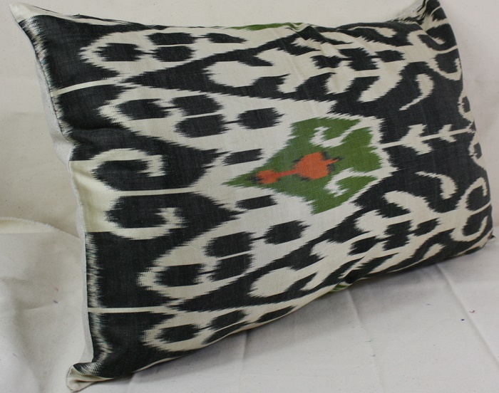 This pillow made from Hand loomed Silk Uzbekistan Ikat fabric. Hand woven Designer ikat throw pillow cover to decorate your luxurious penthouse apartment, infuse so sweet, quite, sooth sleep after hard working day. It can brighten up any old sofa or armchair. Back side is cotton fabric with hidden zipper.