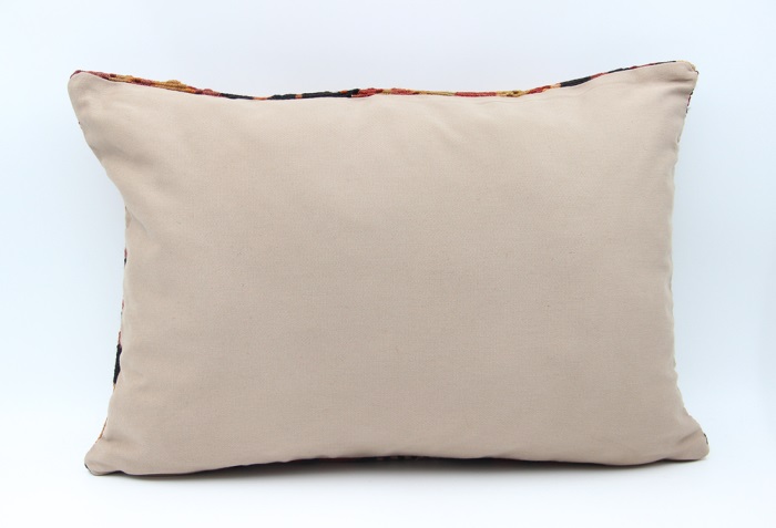 Kilims used in our products are old and genuine. These Kilim Cushions are made with pieces of carpets and kilims joined to make Kilim Cushion Covers. Kilim Pillows can be made for order for any size. Back has cotton with a zipper