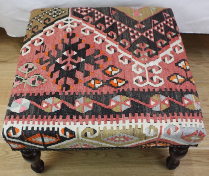 Kilims used in our products are old and genuine. These Kilim Stools are made with pieces of carpets and kilims joined to make Kilim Footstools. Kilim Furniture Covers can be made for order for any size