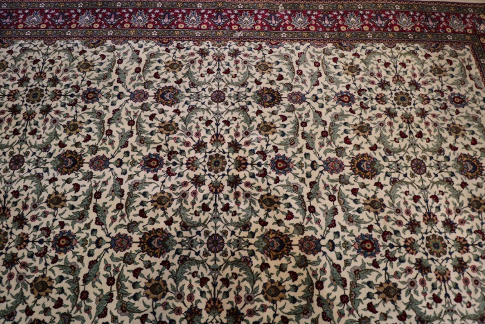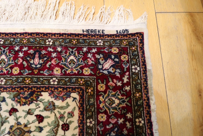 This particular rug is approximately 75 to 80 years old and It is in generally good condition, with only one area showing moth damage.
