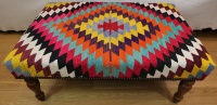 R7596 Antique Turkish Kilim Ottoman Stool Table